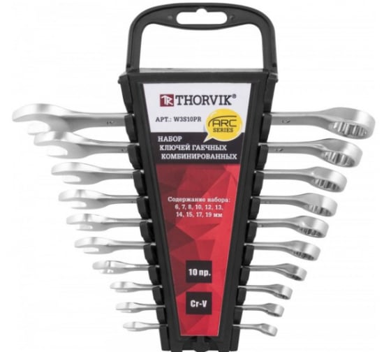 Набор ключей гаечных комбинированных 10 предметов на держателе, 6-19мм серии ARC Thorvik