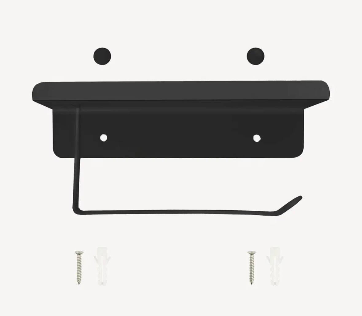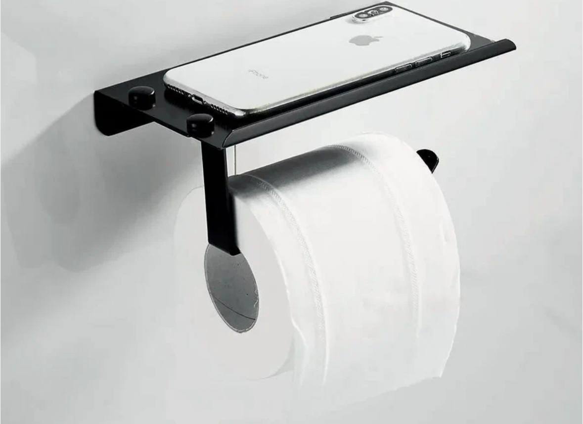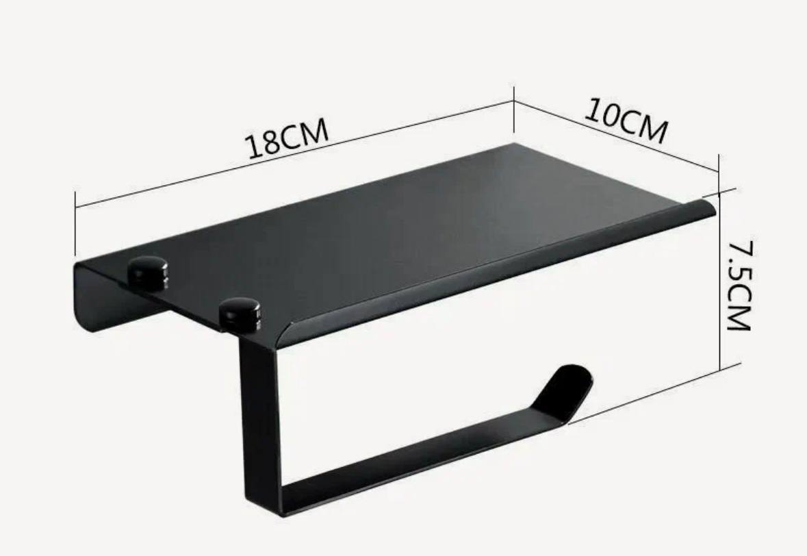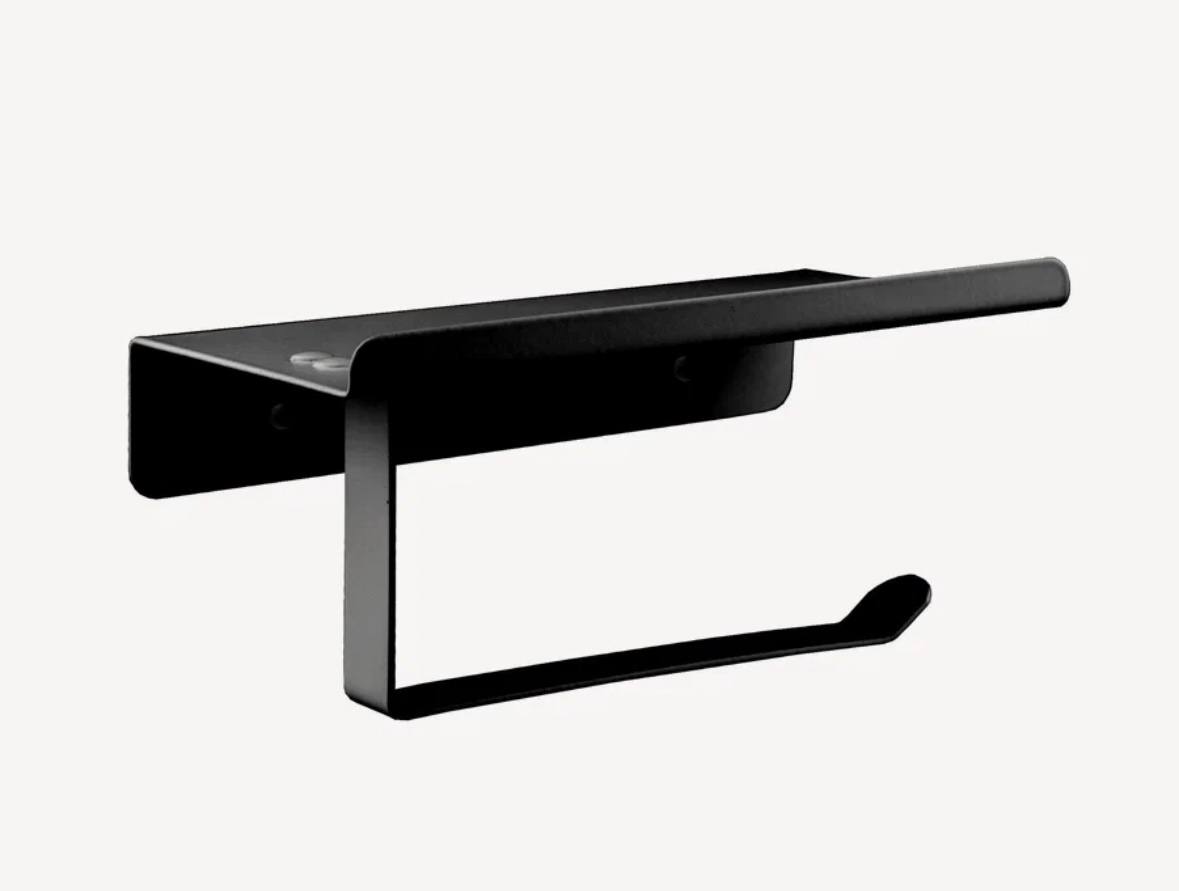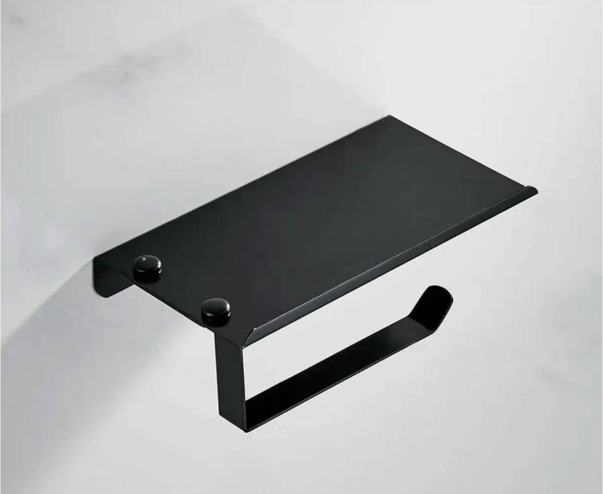 Держатель для туалетной бумаги с полкой, металл, чёрный А11605-4 Accoona — идеальный выбор для ценителей удобства и стиля: надёжный, эстетичный и неприхотливый в уходе!