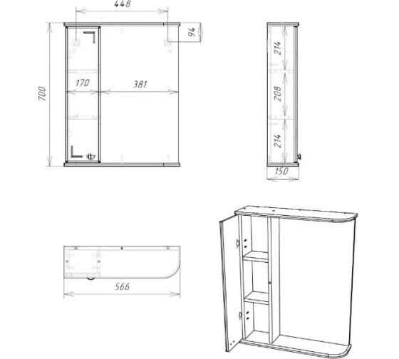 Материал ЛДСП, МДФ, Пленка ПВХ, Зеркало