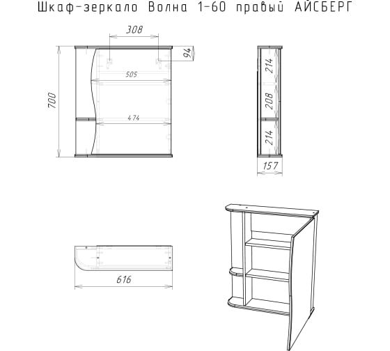 Зеркало-шкаф Волна 1-60 правый АЙСБЕРГ