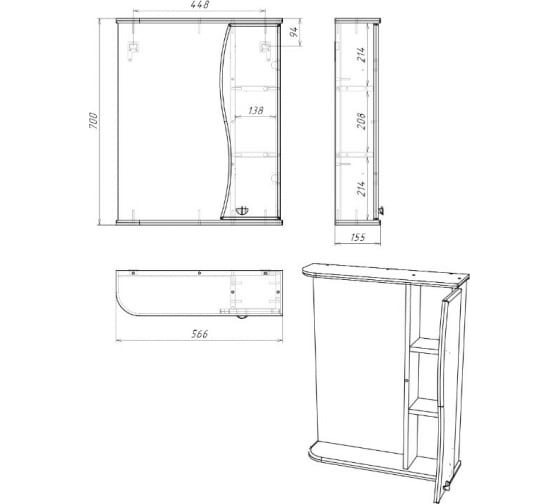 Зеркало-шкаф Волна 55 правый АЙСБЕРГ