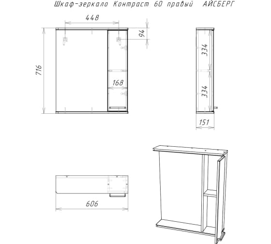 Зеркало-шкаф Контраст 60 левый/правый АЙСБЕРГ (ДС6)