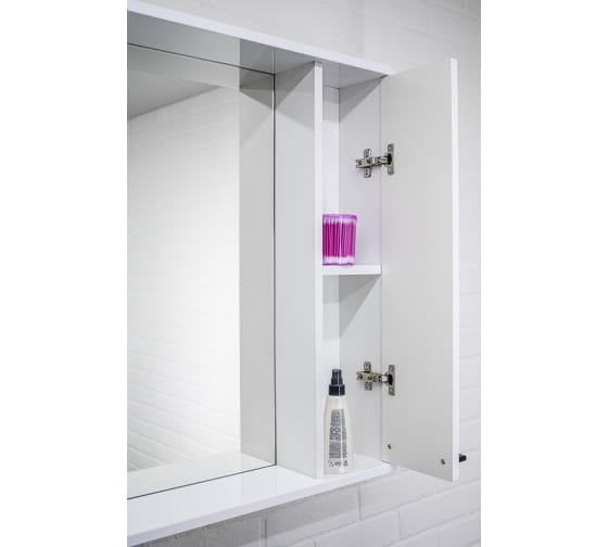 Шкаф-зеркало поставляется в собранном виде. Внутреннее пространство разделено двумя полками. Дверца открывается в правую сторону. 1 год гарантия производителя.