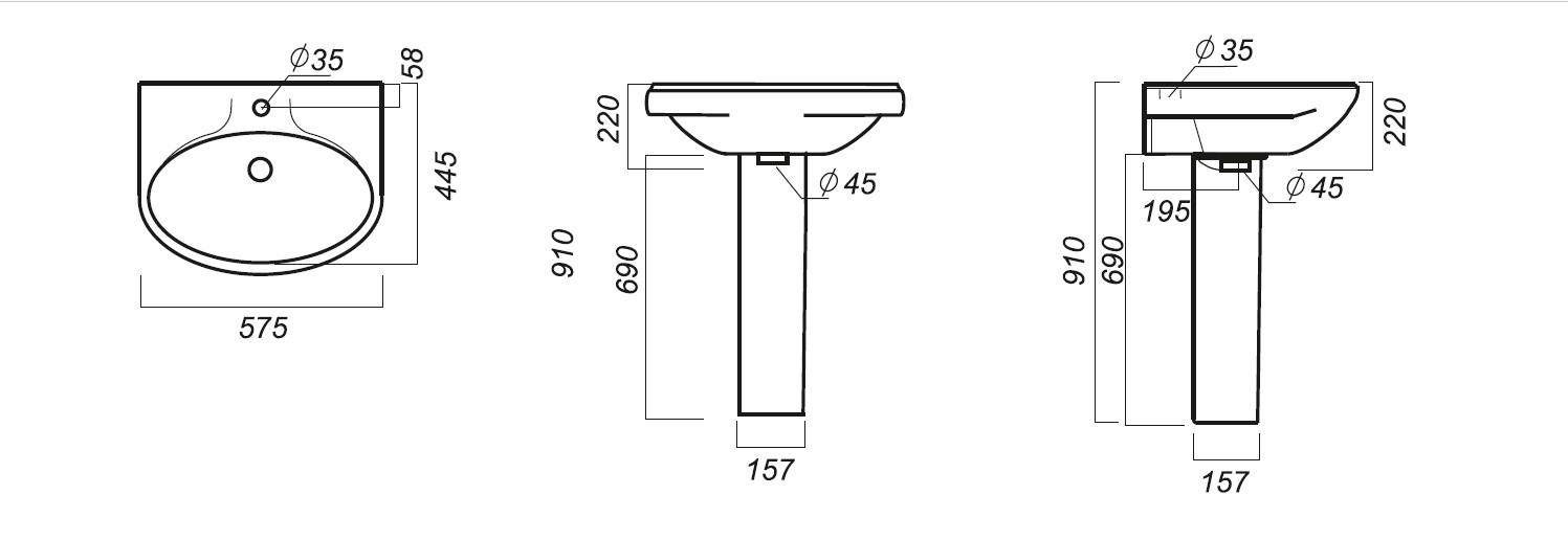 Умывальник "Самарский" 44х57 см, белый с отверстием Sanita (ФС6)