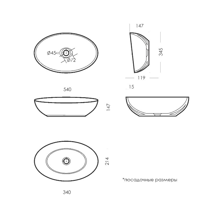 Умывальник накладной Ringo 54 CUT Белый S1 Sanita Luxe