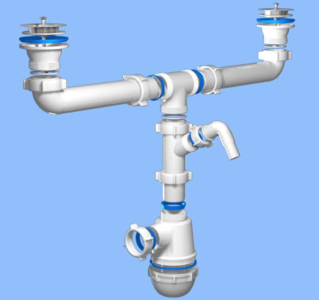 Сифон 1 1/2 двойной с отводом A3500 Ани