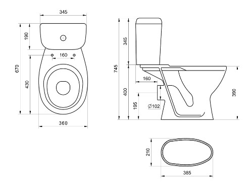 Унитаз-компакт "Pro" с арматурой и сиденьем (горизонтальный выпуск) Santeri