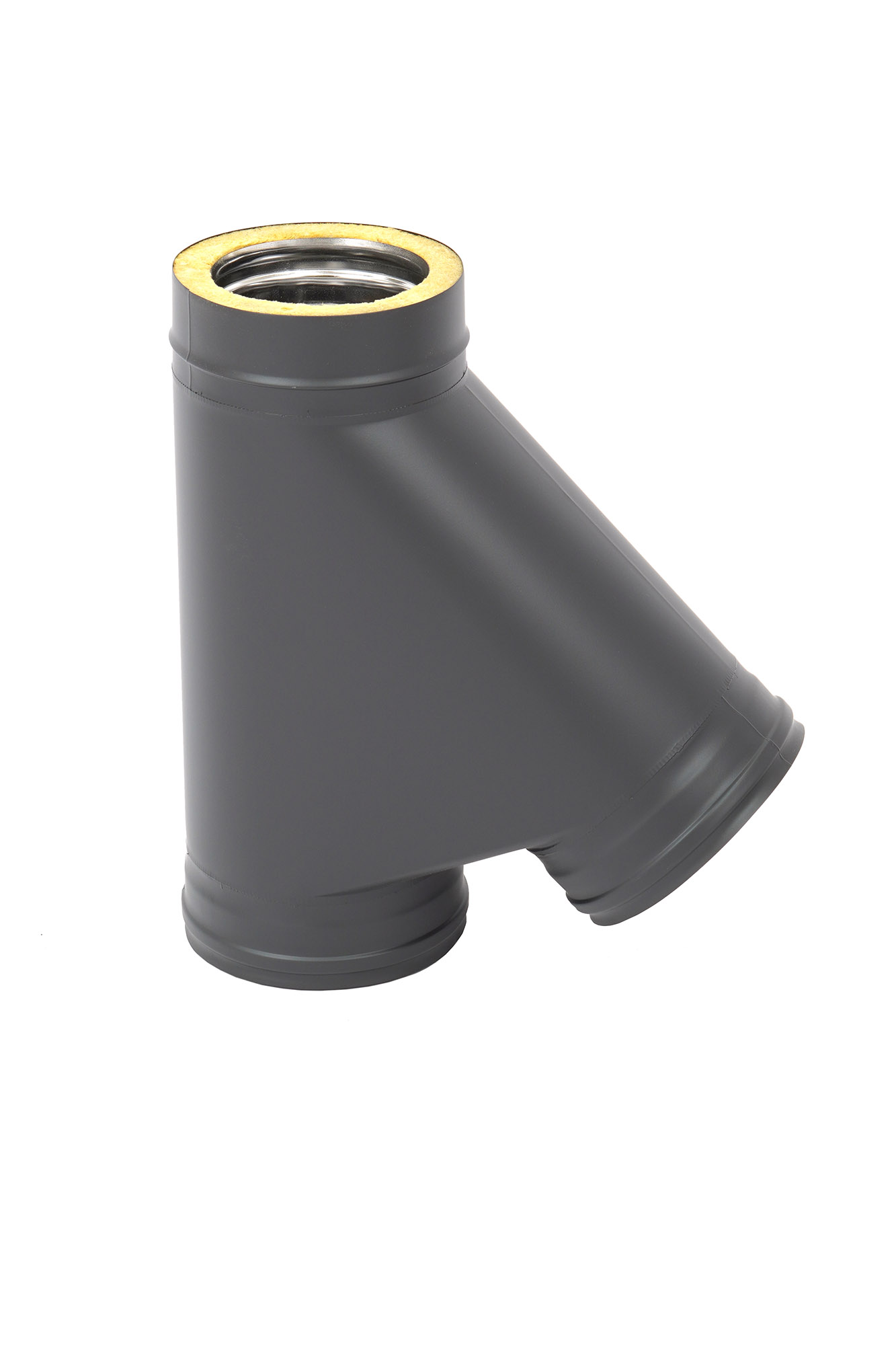 Тройник сэндвич 45 d 150 х 210 толщ. 0,8 нерж (430) х 0,5 нерж (430) черный (RAL 9005) порошок (200С)