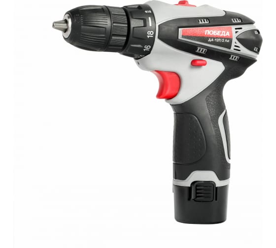 Аккумуляторная дрель-шуруповерт ПОБЕДА ДА-12П/2 Ли 180201637 используется для работы с крепежными элементами.Быстрозажимной патрон гарантирует легкую смену оснастки без применения дополнительного инструмента.