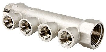 Предназначен для подсоединения к входному участку трубопровода от двух до четырех выходных участков,изготовлен из латуни покрыт никелем.Характеристики