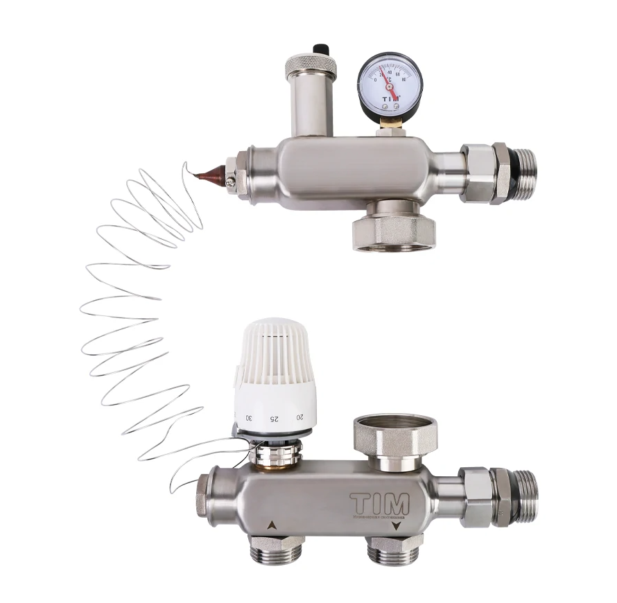 Насосно-смесительный узел без насоса TIM ( JH-040S) из нержавеющей стали выполнен специально для системы «тёплый пол». Он предназначен для стабильного и безопасного распределения теплоносителя, обеспечивает корректную температуру и высокую пропускную способность, а также отличается долговечными материалами и высоким уровнем сборки.- Корпус из нержавеющей стали AISI 304 — максимально высокая коррозионная стойкость и длительный срок эксплуатации.
