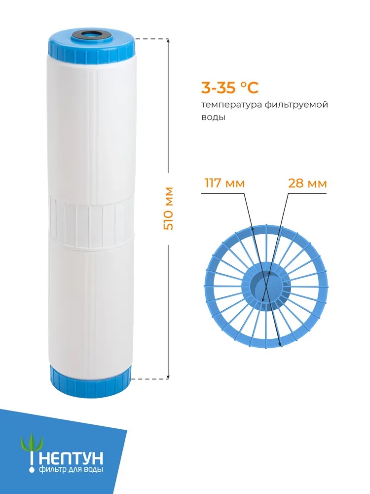 Не упустите возможность приобрести фильтрующий элемент по выгодной цене и наслаждайтесь чистой и свежей водой без загрязнений и неприятных привкусов каждый день. Ресурс (зависит от качества исходной воды): 24 000 л, не более 6 месяцев