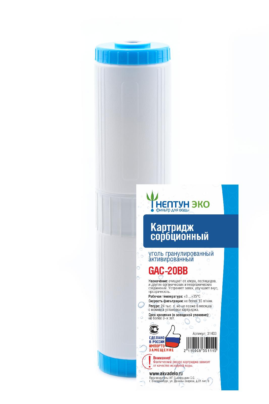 Картридж BB20 GAC (УГА) гранулированный активированный уголь Нептун/Аквадело