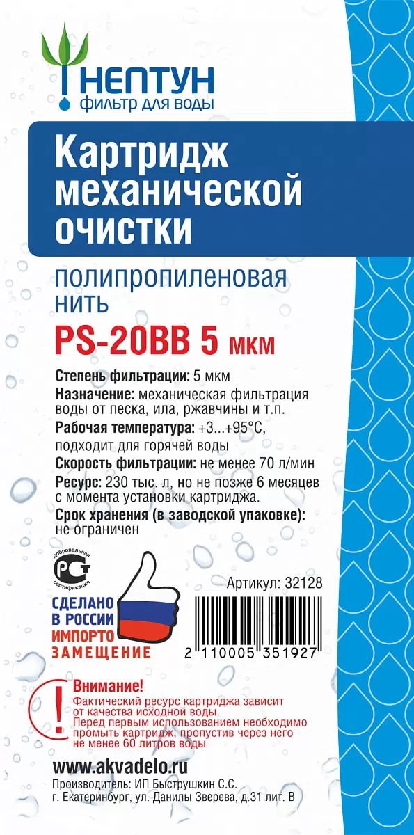 Картридж BB20 PS-5 мкм, полипропиленовая нить Нептун/Аквадело
