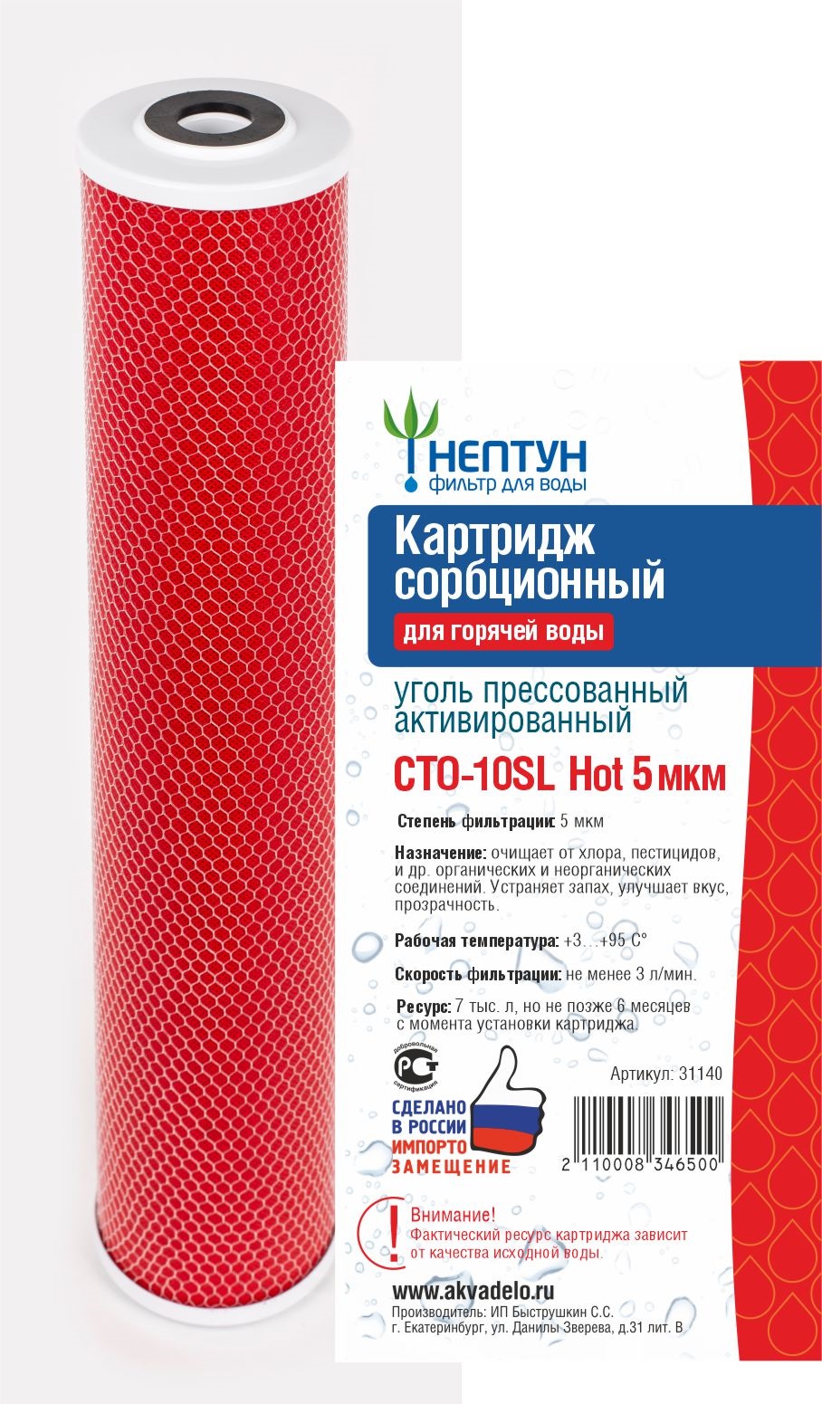 Картридж SL10 5 мкм прессованный активированный уголь (карбон-блок) для горячей воды Нептун