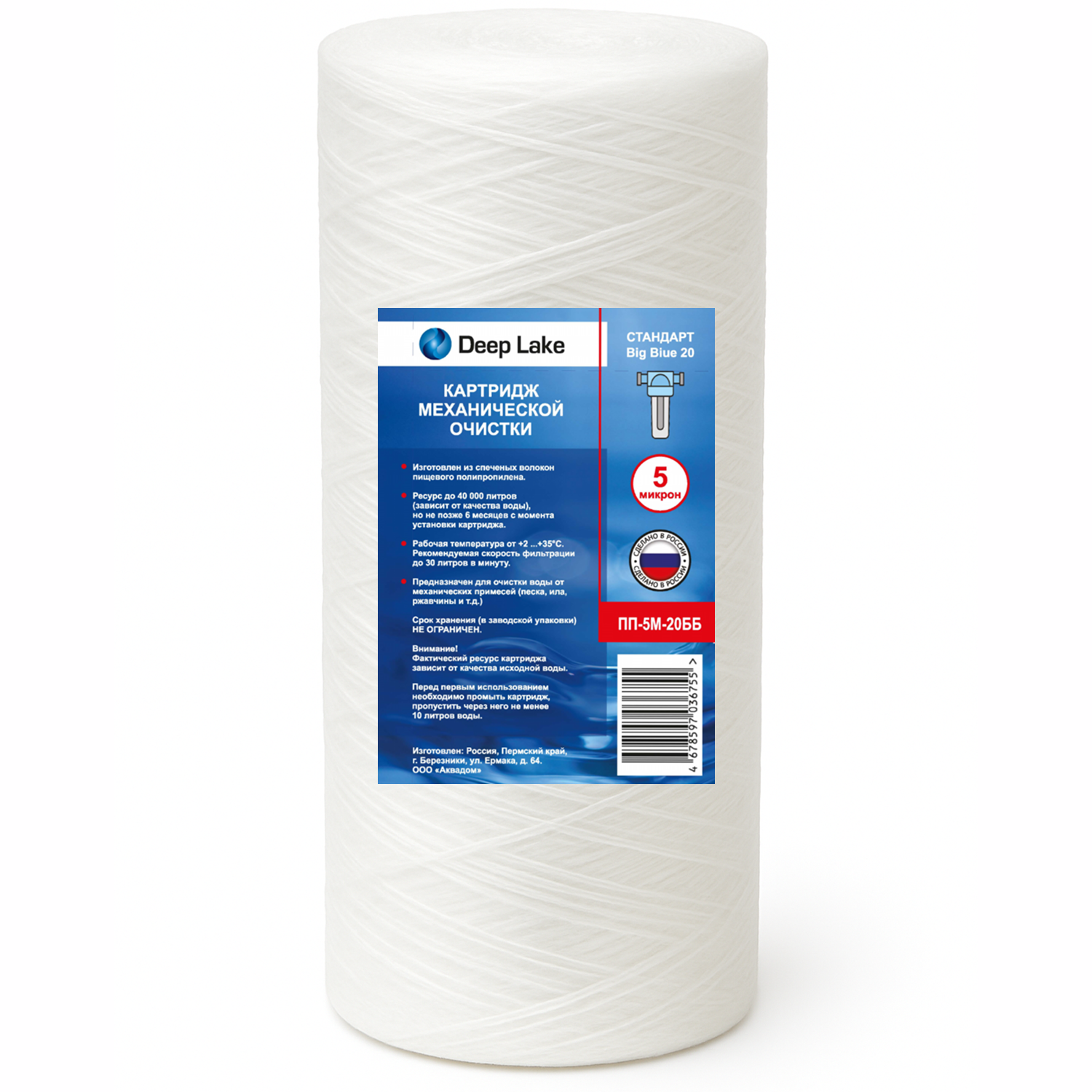 Картридж BB20 PP-5 мкм, полипропилен Deep Lake