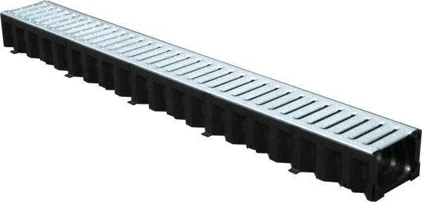 Комплект состоит из пластикового лотка длинной 1 метр и стальной оцинкованной решетки, такой же длинны.Изготовлен из высококачественного пластика и выдерживает температуры в диапазоне от -30 до +60°С.