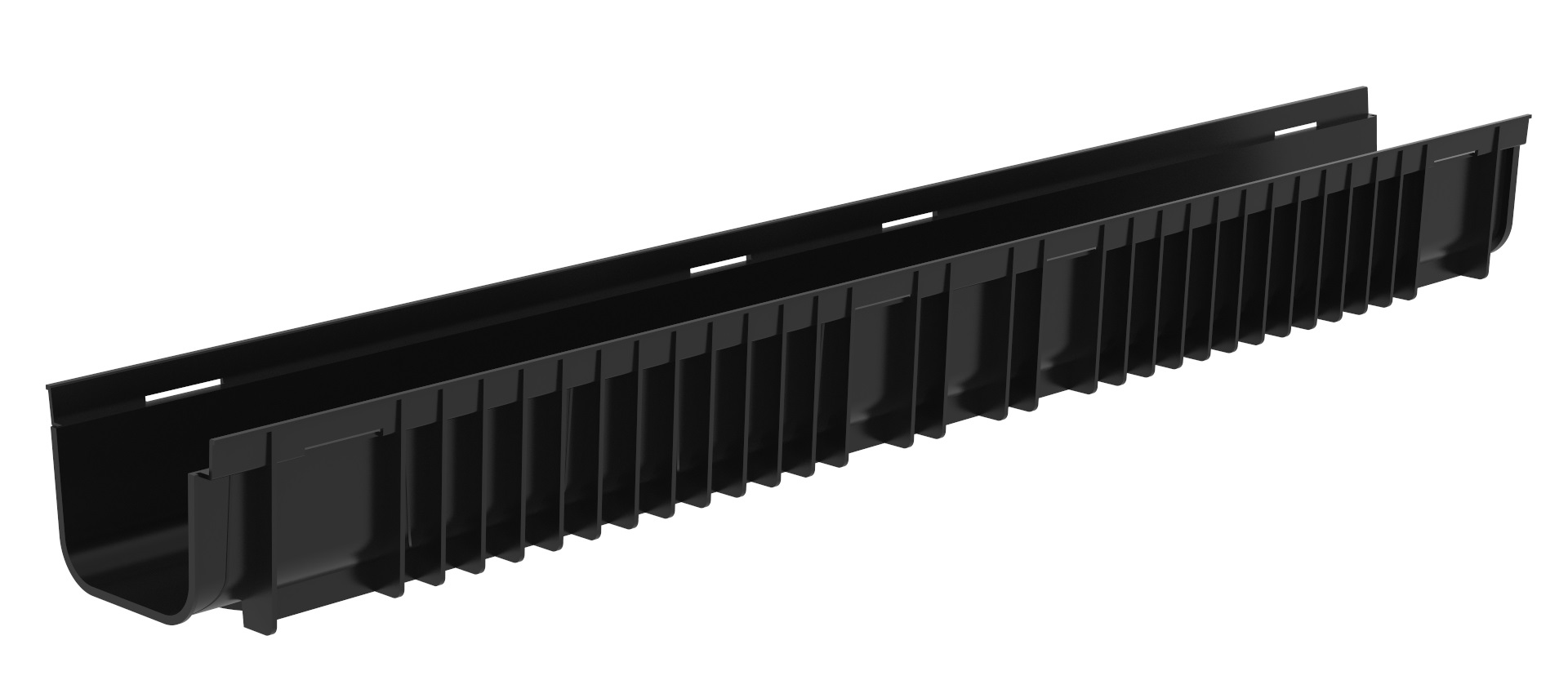 Поставляется в сборе с стальной решеткой. Это самая экономичная серия пластиковых водоотводных лотков. Не требуют специальных фиксаторов решетки и дополнительных соеденительных элементов для подключения канализационных труб, в лотках уже предусмотренны патрубки для их подключения."