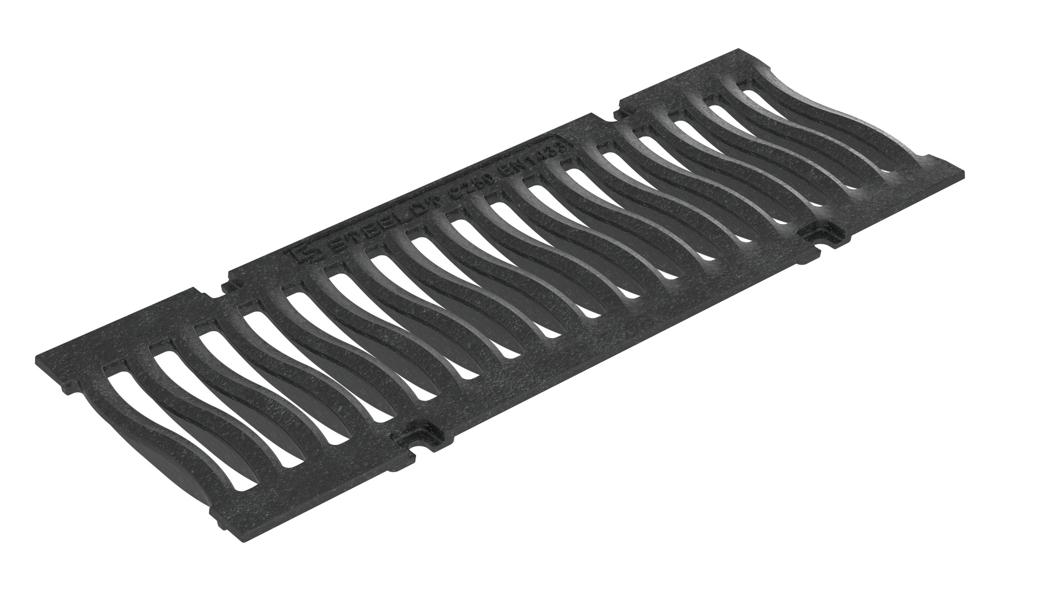 Решетка водоприемная чугунная волна серии SteeStart DN150 совместима с водоотводными лотками серии SteeStart DN150 Н180. Класс нагрузки С250. Оптимальное решение для благоустройства придомовомой территории, спортивных сооружений, паркингов для легкового и легкового коммерческого транспорта, дорог с малой интенсивностью движения где не предусмотрен проезд грузового транспорта и строительной спецтехники."