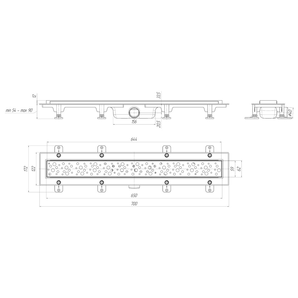Трап-лоток 40*62*650, сухой затвор, пластик, решетка нержавейка глянец "Бриз" TLQ1365G Ани
