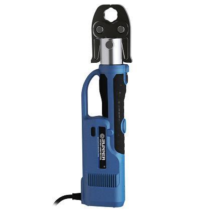 Инструмент оснащен электрогидравлическим приводом мощностью 490 Вт, работающим от источника переменного тока напряжением 220–240 В и создающим давление опрессовки в 3,2 т. Предусмотрены автоматический реверс, звуковая и световая сигнализация об ошибках в работе, функции самодиагностики при включении инструмента в сеть, световая сигнализации о приближении срока/необходимости проведения технического обслуживания (периодичность – 30 тыс. циклов). Вес инструмента – 4,1 кг.