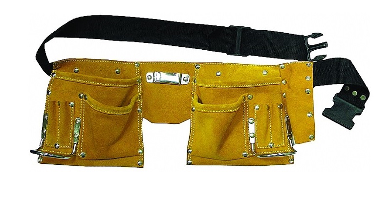 Пояс для инструмента, натуральная кожа, 8 карманов, 2 скобы. В комплект пояса входят две поясные сумки из натуральной кожи с карманами разных размеров, а также металлический держатель для подвешивания молотка. Длина ремня может быть отрегулирована для более комфортного использования.Отзывы