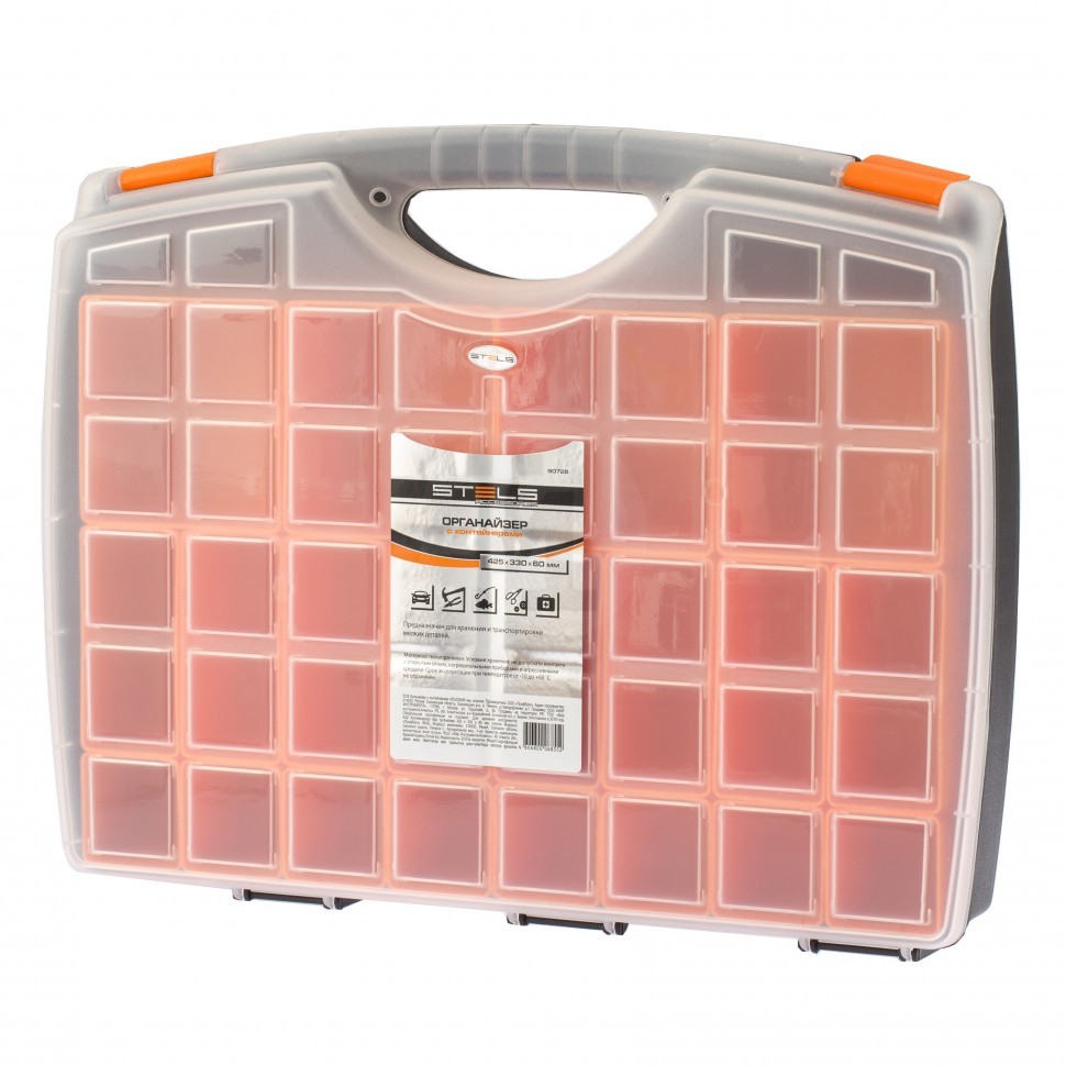 Большой и удобный органайзер с множеством отделений различного размера.Выполнен из прочного пластика.