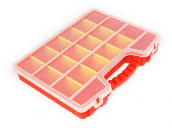 Большой и удобный органайзер с множеством отделений различного размера.Выполнен из прочного пластика.