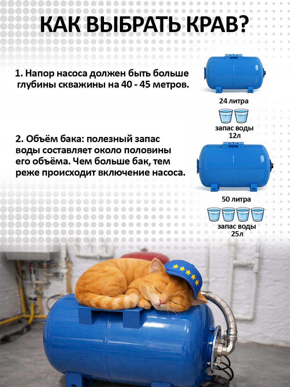 Гидроаккумулятор с автоматикой КРАВ 24 л подходит для скважинных и поверхностных насосов и позволяет быстро реализовать надёжную систему автоматизации водоснабжения «под ключ».