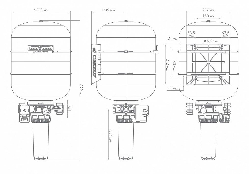 Подходит к любому насосу. Можно изменить направление потока воды через КРАБ", повернув бак на 180 градусов и переустановить манометр и реле давления на лицевую сторону.