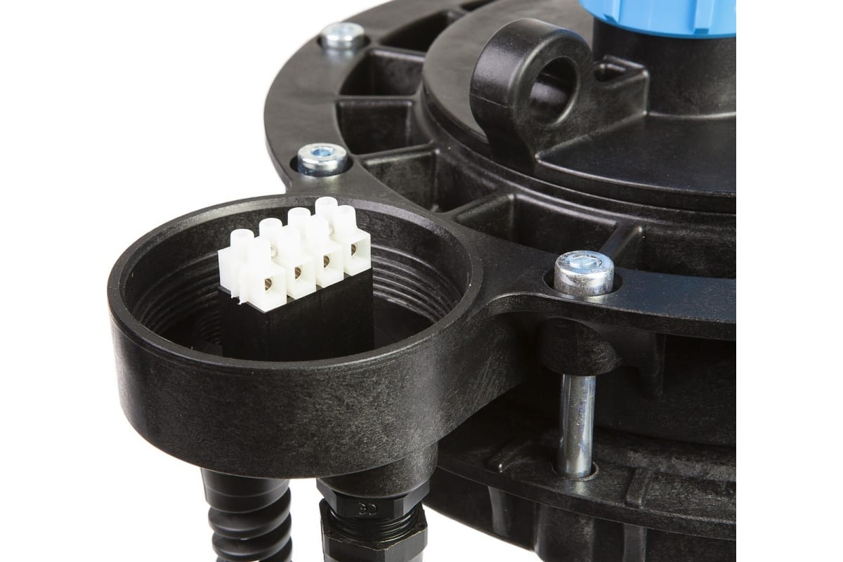 ? Крышка оголовка оснащена отверстиями для крепления троса, который используется для подвешивания насоса на нужную глубину.
