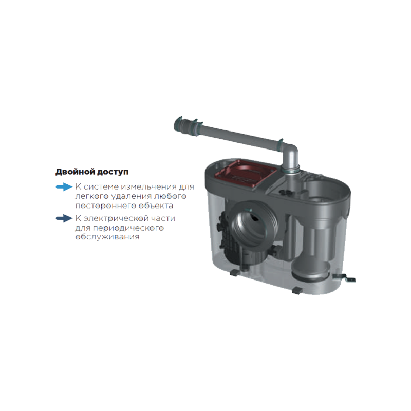 Двойной доступ - к системе измельчения и электрической части насоса, без демонтажа.