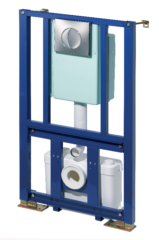 Состоит из монтажной опоры (инсталляции) в комплекте с бачком, насоса измельчителя, матового стекла и кнопки слива.