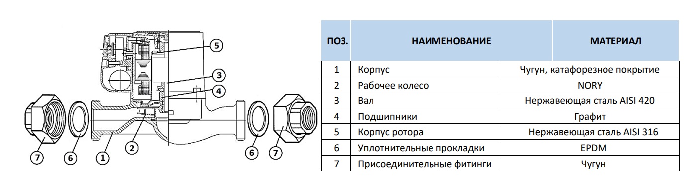 Насосы имеют исполнение «с мокрым ротором» это значит, что детали насоса охлаждаются перекачиваемой жидкостью.