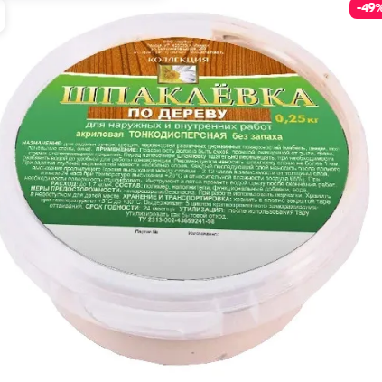 ---Шпатлевка по дереву 0,25кг дуб КОЛЛЕКЦИЯ (И)НасосыКанализация, дренаж и водоотведениеТрубы и фитингиСмесителиВодонагреватели и бойлерыОтопительные системыПечи и котлыЗапорная и регулирующая арматураДымоходы и комплектующиеТеплоизоляция, защитная гофра и греющий кабельДля ванной и кухниФильтрация водыЕвроконусы, коллекторы, коллекторные группы, смесительные узлыРасширительные бакиПредохранительная арматураРезьбовые фитингиСчётчики воды, приборы учёта, манометры, термометрыШланги и гибкая подводкаВентиляцияСервоприводы, термостаты, контроллерыКрепеж, инструмент и расходные материалыСад и дачаСадовая техникаСиловая техникаАвтотоварыЭлектроинструментОтделочные материалыЗащита от протечек