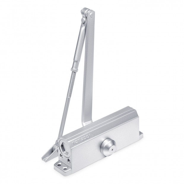 Доводчик дверной, механо-гидравлический, двухскоростной, усилие EN6, с рычажной тягой, для дверей весом до 150 кг, цвет - сереброВес дверного полотна: 150 кг