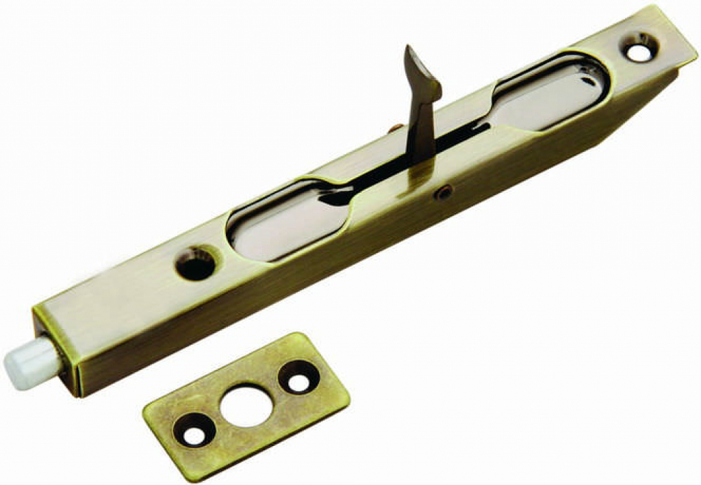 Дверной ригель обеспечивает фиксацию полотна в проеме. Обычно он устанавливается на двухстворчатые межкомнатные двери и монтируется сверху, позволяет зафиксировать одну створку без особых усилий. Лёгкая врезная установка не составит затруднений. Цвет бронзовый.Характеристики