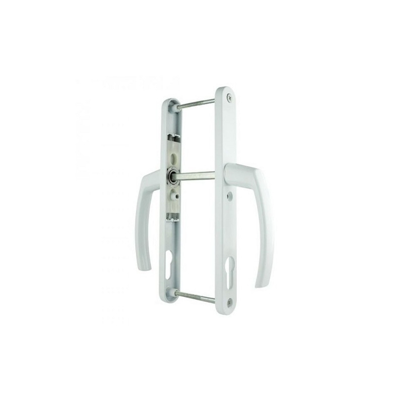 Ручки на планке подпружиненные (нажимной гарнитур) НГ 92.60.25.02 (белый) предназначены для пластиковых дверей с замками межосевое расстояние которых 92 мм.Штатные квадрат и винты рассчитаны на толщину профиля от 59 мм до 68 мм, и в случае необходимости подрезаются.