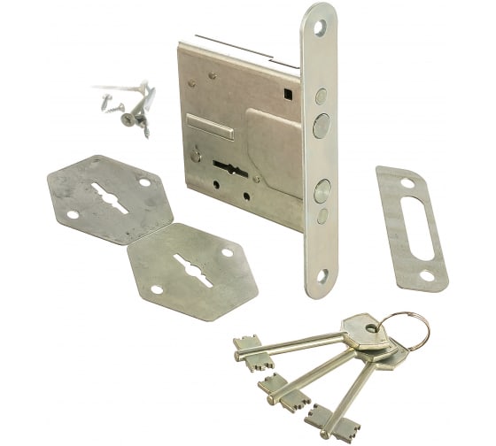 Замок врезной 4х сувальдный. Предназначен для установки в деревянные двери. Два цилиндрических ригеля диаметром 11мм, вылет 21мм. Удаление ключевого отверстия 51мм. Стальной оцинкованный корпус. Ширина торцевой планки 22мм. Заявленная секретность 100 кодовых комбинаций. 3 ключа.Отзывы