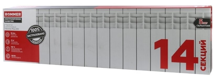 Радиатор алюминиевый ROMMER Plus 200/100/14Алюминиевые радиаторы Rommer, созданные посредством давления при литье, представляют собой оптимальное решение для систем отопления в частных домах. Благодаря высоким теплопроводным свойствам алюминия, эти радиаторы обеспечивают максимальную теплоотдачу. Эти устройства отопления были специально разработаны для эксплуатации в условиях России и соответствуют ГОСТ 31311-2005.