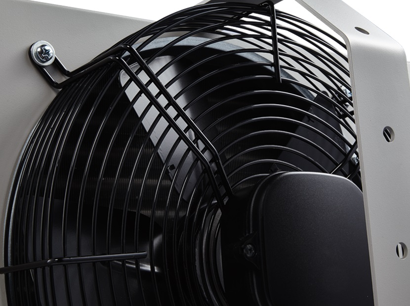 Осевой вентилятор диаметром 330 мм создает воздушный поток длиной 6 метров и обеспечивает максимальную производительность до 1900 м?/ч.