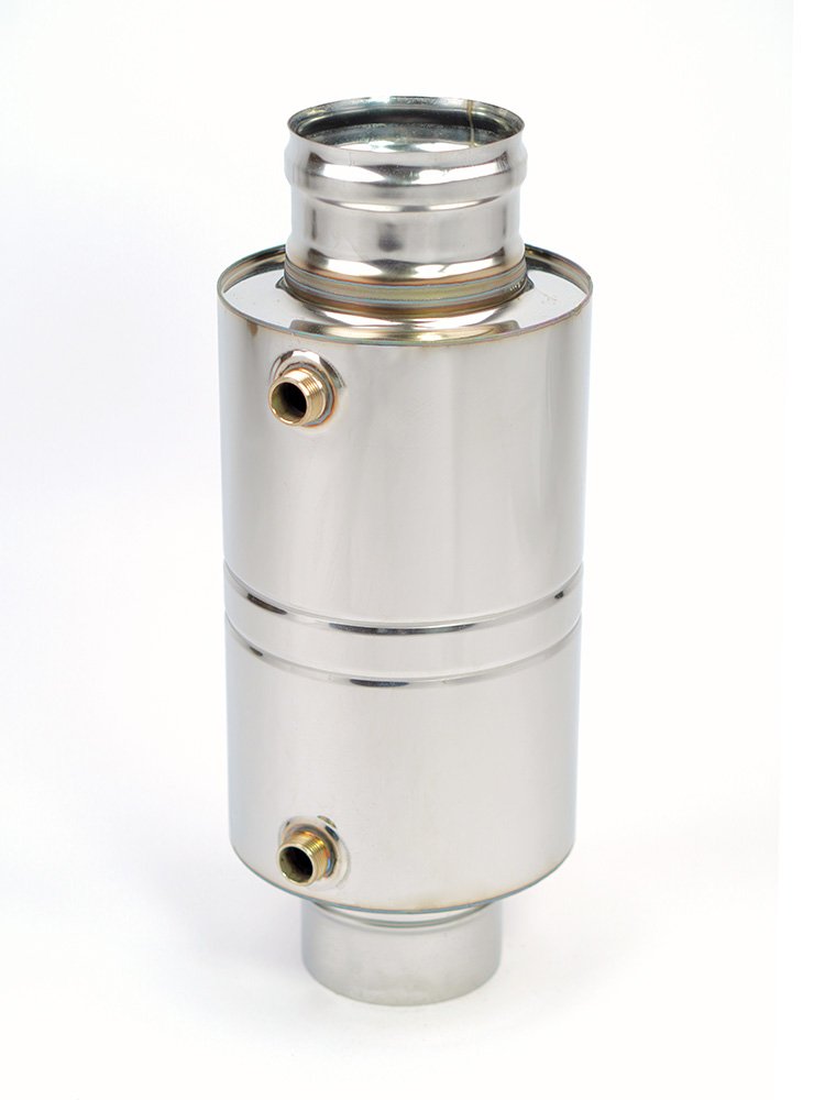 Пароперегреватель ППШ-М - это теплообменик, который устанавливается непосредственно на банную печь в качестве стартового элемента дымохода. Нижняя часть данного аппарата заполняется водой через нижний патрубок, где происходит активный процесс кипения и перегрева образующегося пара в процессе прохождения внутри теплообменника, за счет съема тепла с внутренней трубы дымохода. В процессе работы из верхнего патрубка выходит перегретый пар. Снабжён двумя патрубками с наружней резьбой 3/4Преимущества дымоходов «Евро ТиС»: