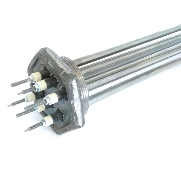 Каждый ТЭНБ-12 кВт представляет собой группу электронагревателей типа ТЭН, смонтированных во фланце с использованием прочного обжатия. Для удобной установки на объекте ТЭНБ — оснащены резьбовым фланцем диаметром G2 1/2 и шестигранным винтом под ключ для надежного крепления.