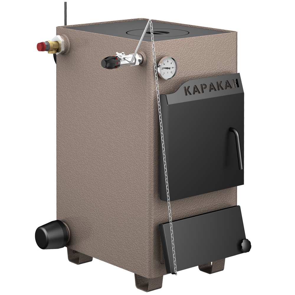 Котёл твердотопливный Каракан-10 ТПЭ 3 с варочной панельюКотел отопительный твердотопливный КАРАКАН-10ТПЭ3 с водяным контуром предназначен для обогрева жилых и производственных помещений площадью до 100 м2. Котел может встраиваться в любую систему отопления: с естественной и насосной циркуляцией, с открытым и мембранным расширительными баками.