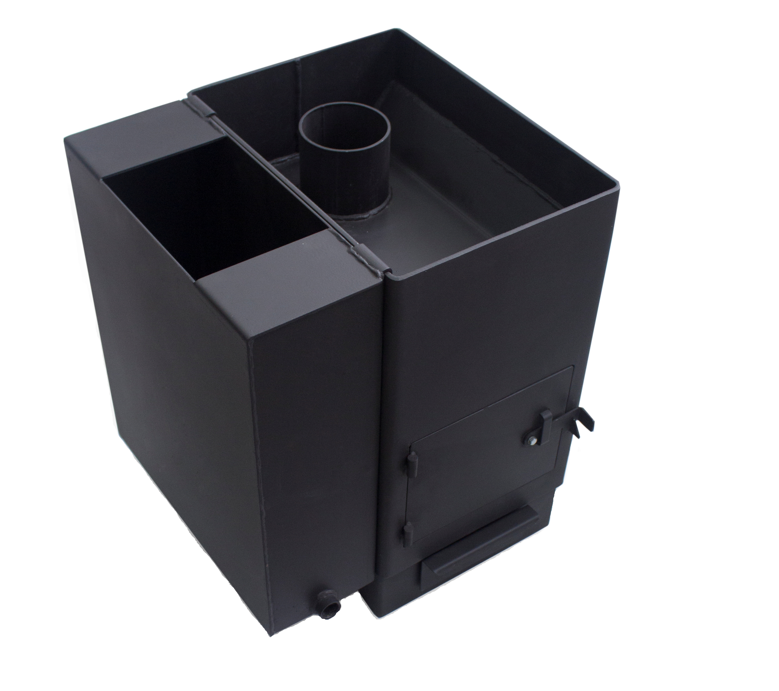 Дополнительной опцией, предусмотренной для установки на банную печь "Копеечка", является бак для нагрева воды, (не входит в комплектацию) который изготовлен из стали марки Ст.3.сп5, емкостью 31 литр.