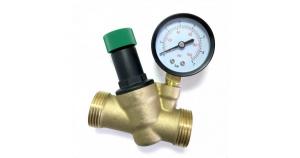 Редуктор давления поршневой универсальный 1/2 гг, 3/4 шш (1- 6 бар) с манометром 1/4" TIM