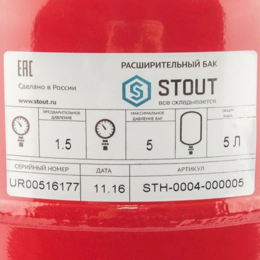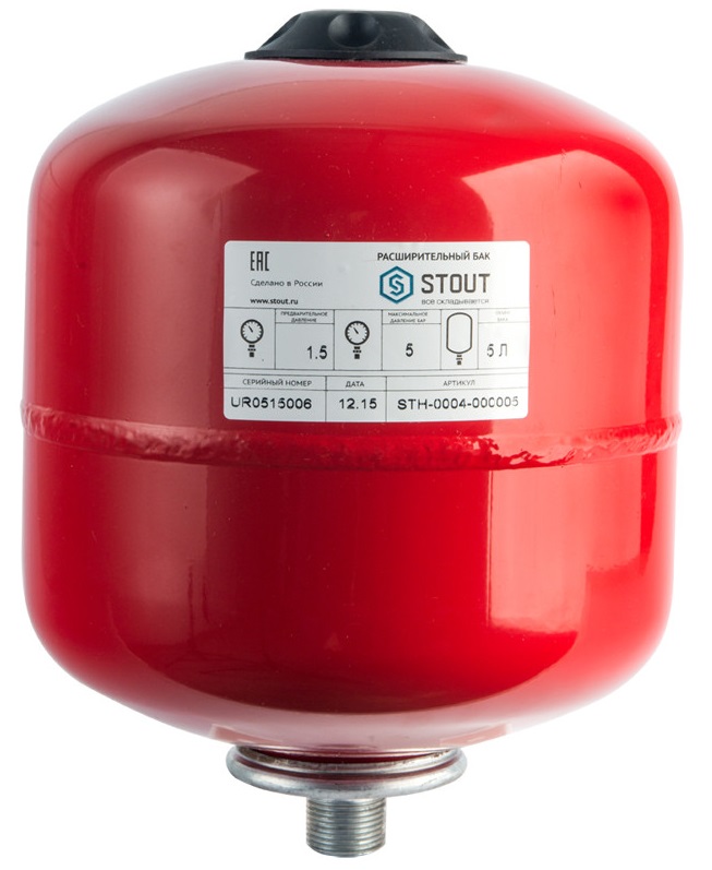 Бак расширительный 5 л красный вертикальный d 3/4", 5 bar STOUT?? Расширительный бак STOUT — это надежное и высококачественное решение для систем отопления, обеспечивающее эффективное управление давлением и защиту от избыточного давления. Он предназначен для работы в закрытых системах отопления, позволяя компенсировать объем воды, который изменяется при нагревании, и предотвращая повреждения оборудования.