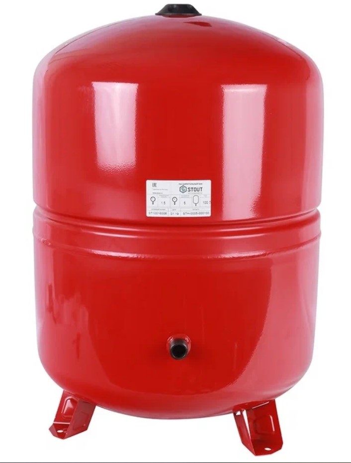 Бак расширительный для отопления 100 л красный вертикальный с ножками d 1", 6 bar STOUT?? Расширительный бак STOUT — это надежное и высококачественное решение для поддержания стабильного давления в системах отопления. Он предназначен для компенсации изменений объема жидкости при нагревании, что защищает оборудование от избыточного давления и предотвращает его повреждение. Бак способствует улучшению работы системы, увеличивая ее эффективность и срок службы всех компонентов.