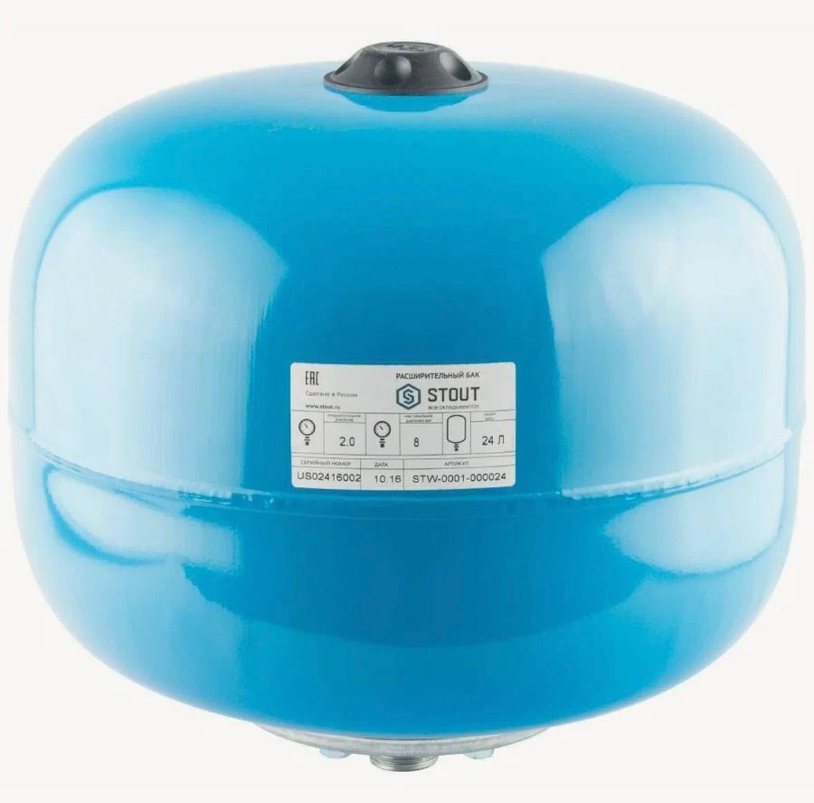 Расширительный бак 24 л синий вертикальный D 1", 8 бар STOUT?? Расширительный бак STOUT — это высококачественное решение, предназначенное для регулирования давления и поддержания стабильной работы систем отопления, водоснабжения и водяного охлаждения. Он эффективно компенсирует изменения объема жидкости в системе, предотвращая перепады давления, что защищает оборудование от повреждений и увеличивает срок его службы. Бак помогает избежать гидравлических ударов и избыточного давления в системе, улучшая ее работу.