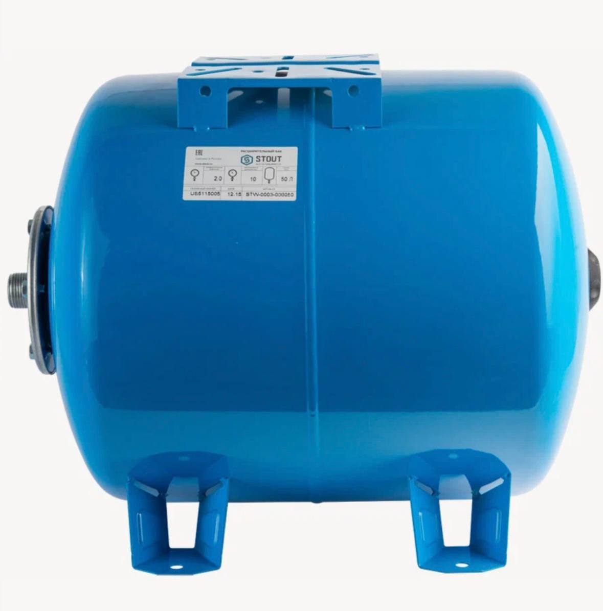 Бак гидропневмобак 80л. синий горизонтальный d 1", 10 bar STOUT